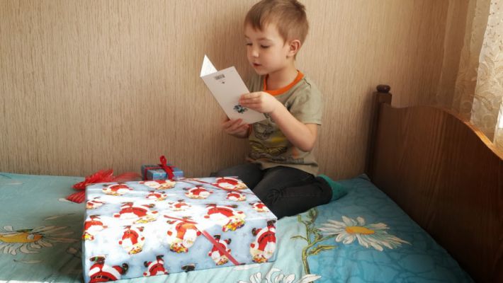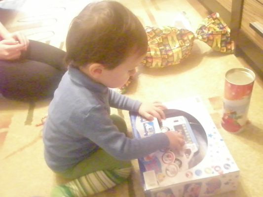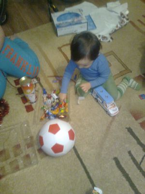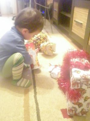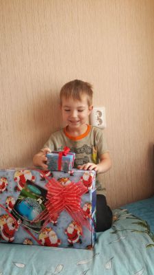 И я отчитаюсь!!!! Ура наша сказка свершилась. К нам сегодня приходила наша Снегурочка bloodya с Дедом Морозом и маленьким помощником Санты!!! Очень приятные гости!!! Спасибо за знакомство. Вручили нам огромный пакет с подарками. наша Снегурочка учла все, все наши предпочтения и пожелания. Подарки просто супер, малый в восторге. Благодарю за замечательные теплые слова-пожелания и "кусочек семейной новогодней традиции" с подробной инструкцией по применению. А вот и наш фотоотчет. Заранее прошу прощения за фотографии, сломался фотоаппарат, пытались на телефон фотографировать... Но главное - эмоции моего малого!!! Мяч мы уже попинали ногами, машинкой поуправляли, конфеты попробовали... А пирог оставили на Новый год.