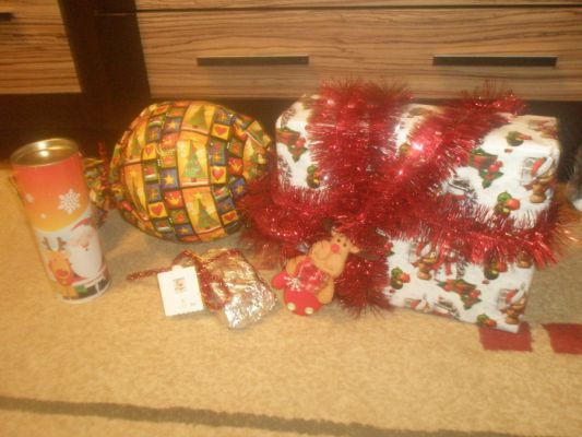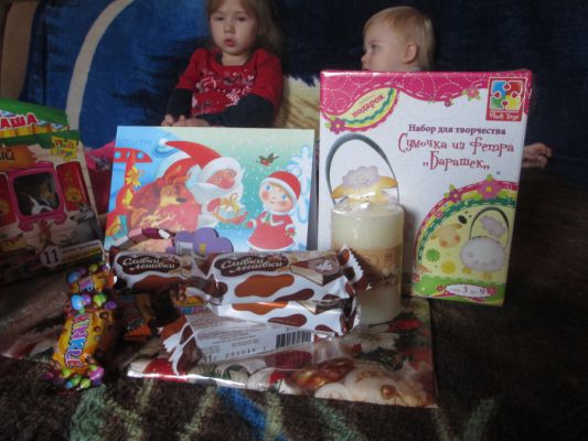 А вот какие подарочки передала нам сегодня наша снегурочка Татьяна.(к сожалению не спросила ника)