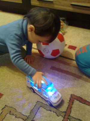 Жаль нельзя эмоции передать, но прокомментирую: ""ААААА, брррр, ооо" Машинка просто потрясающая на управлении, играет музыка, горят огоньки.