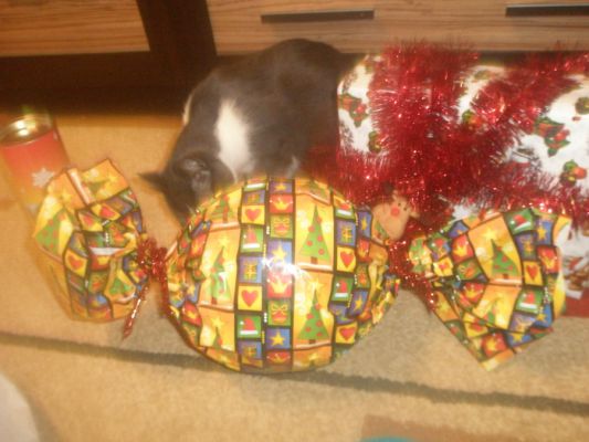 Наш котик тоже изучил все подарки. Все обнюхал!!!
