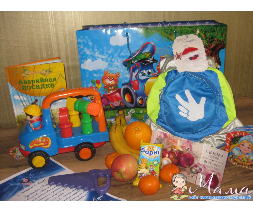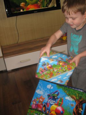 Еще в подарке были фрукты и Барни, но у Ромки сейчас обострение аллергии, так что вкусности достанутся родителям