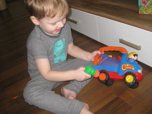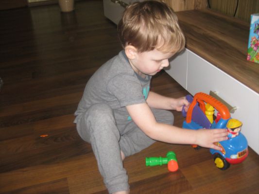 Сначала Рома добрался до машинки с инструментами - такой восторг! Таня, это действительно то, что нужно!!!Прям в яблочко!