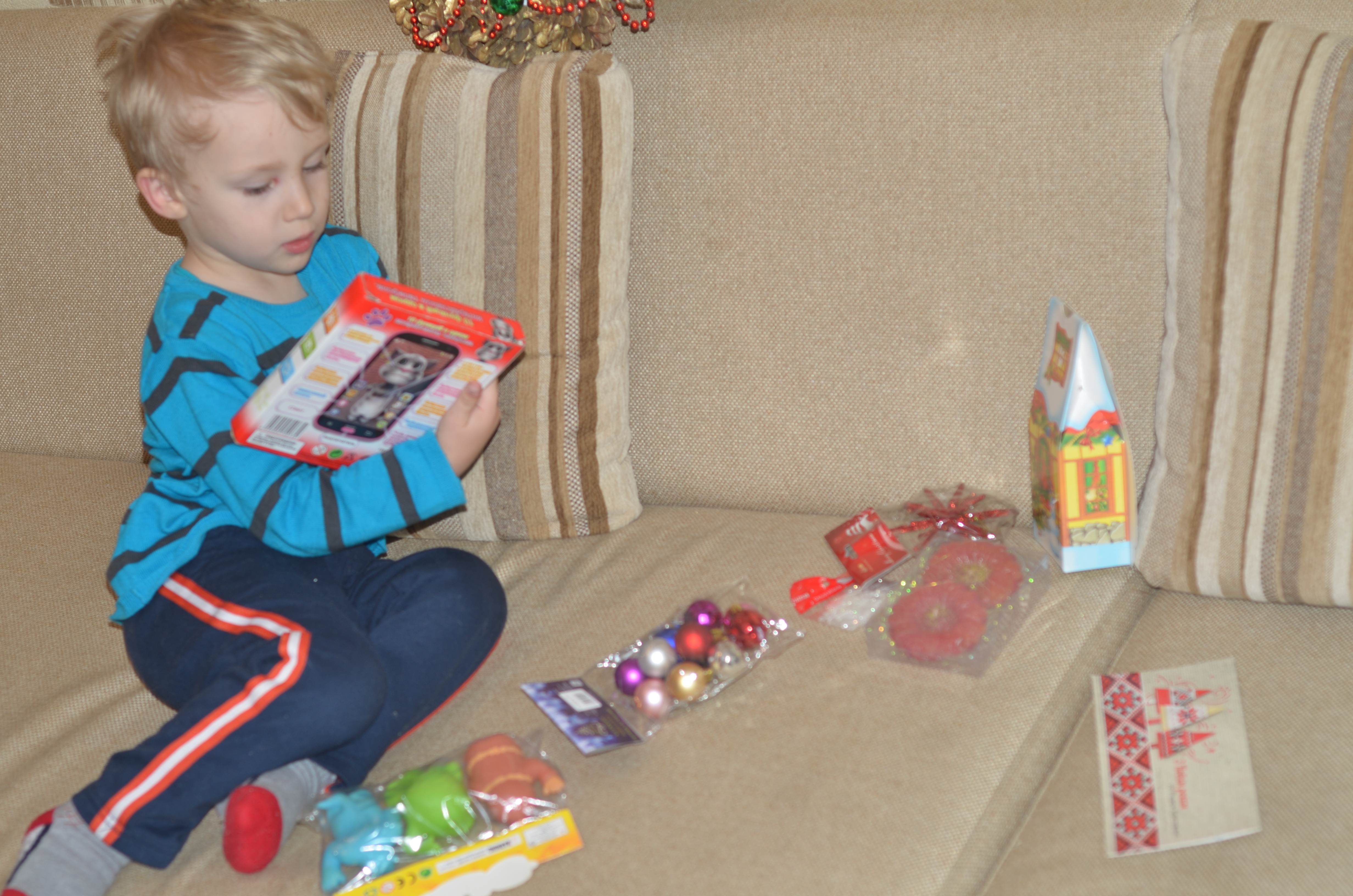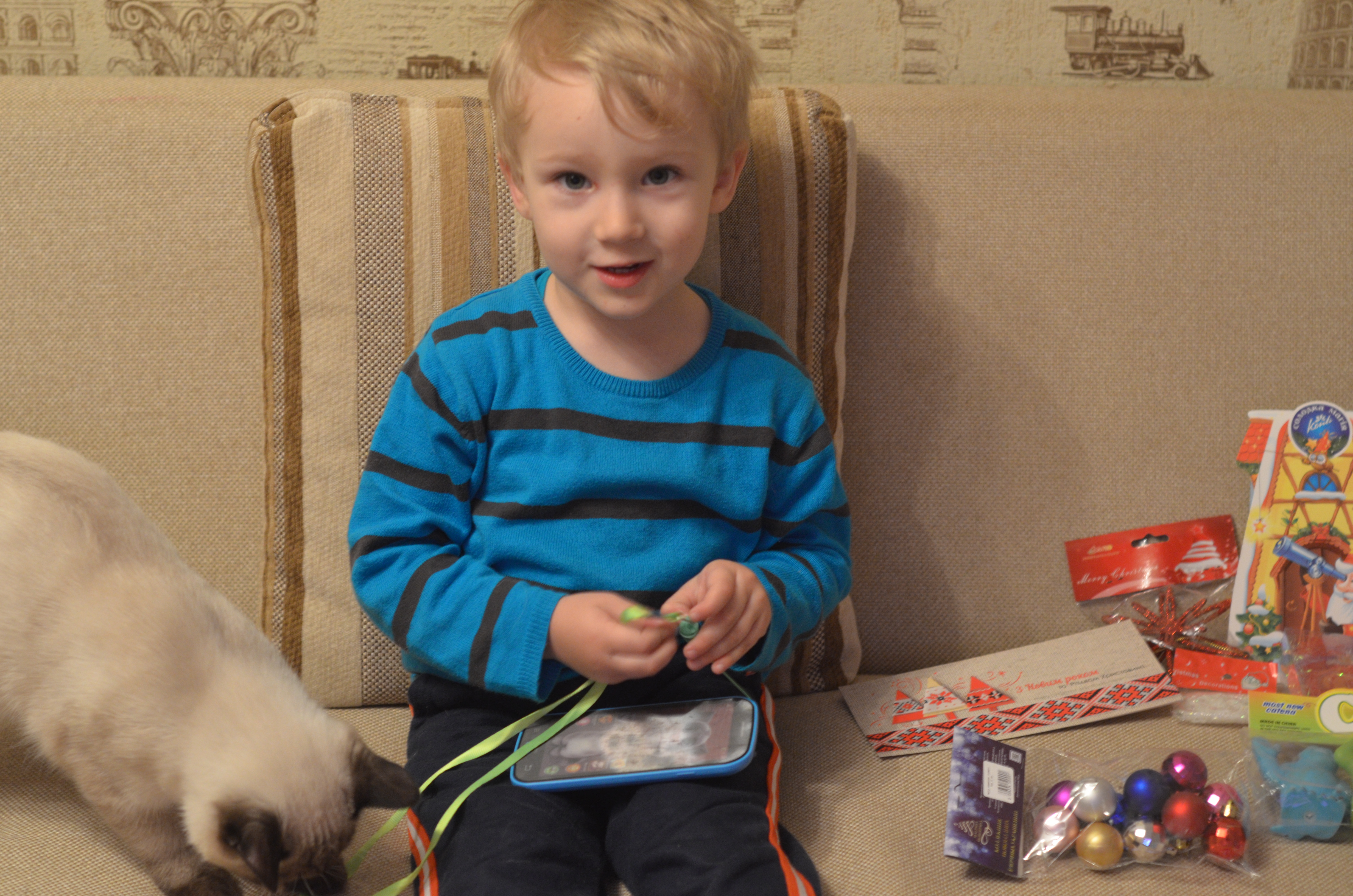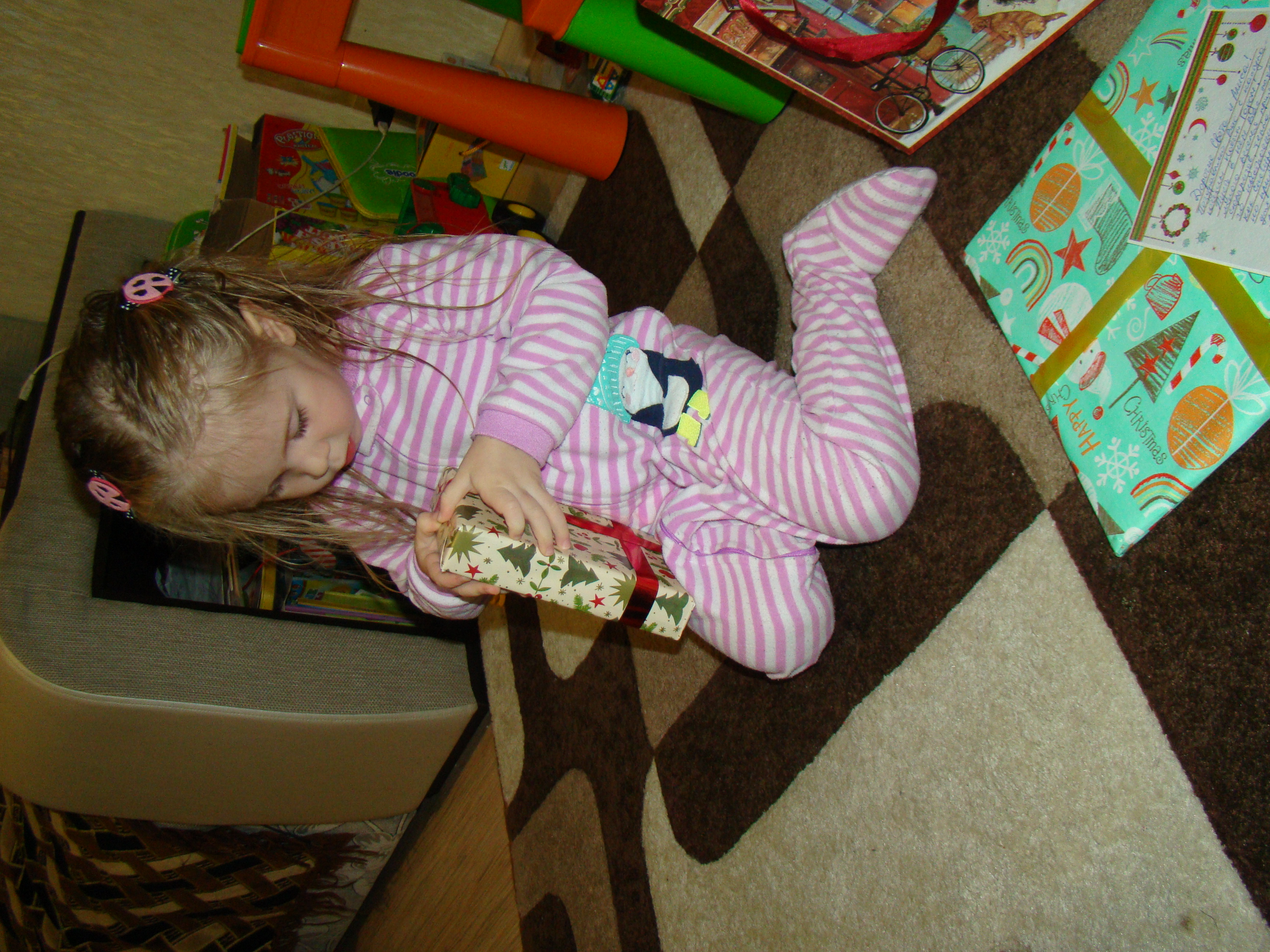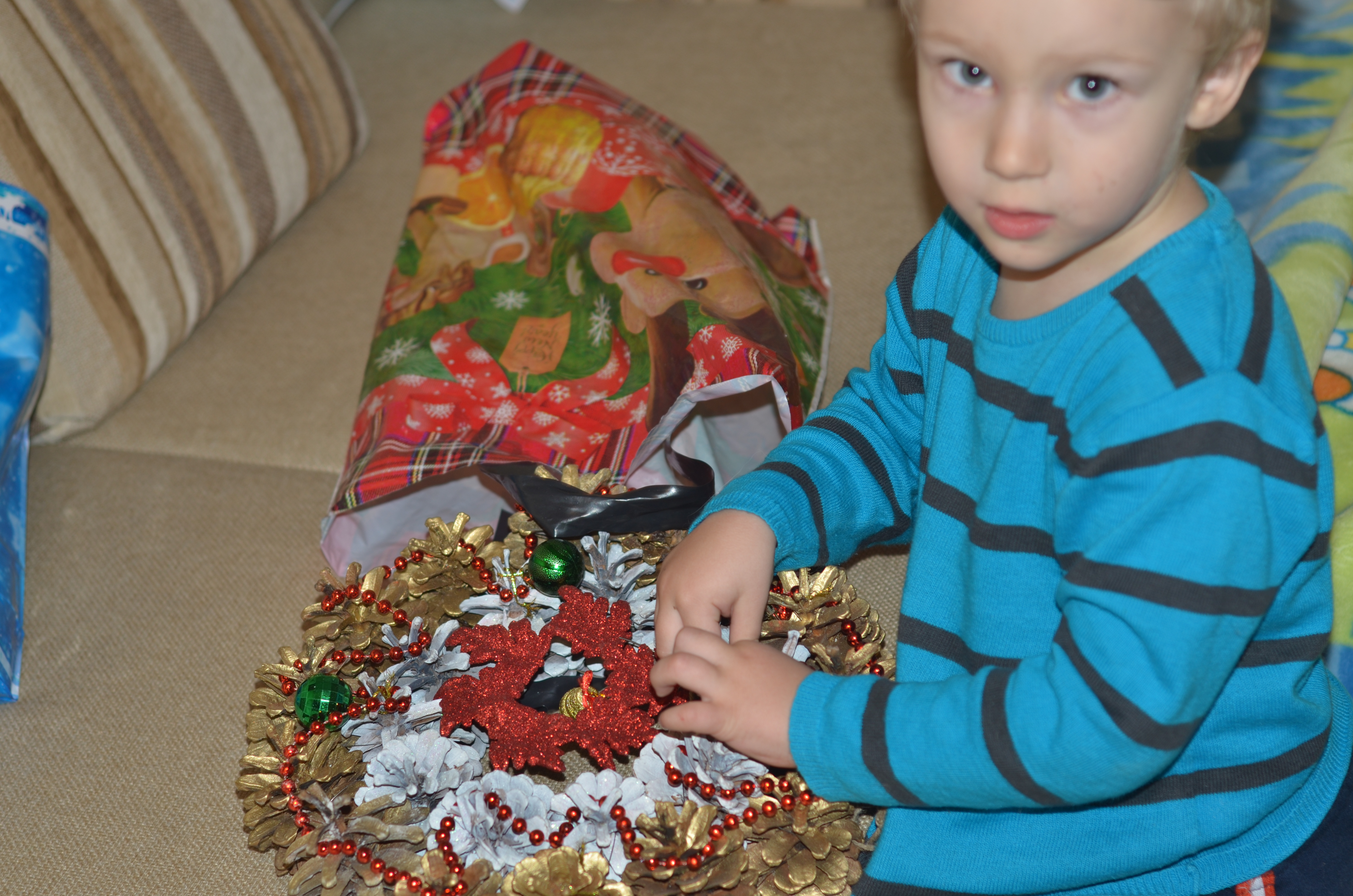 Единственная "проблемма", Александра отказывается портить всю эту красоту, и мою тоже, так что мой подарок теперь висит на елке))) А на свой Саша сидит и любуется)