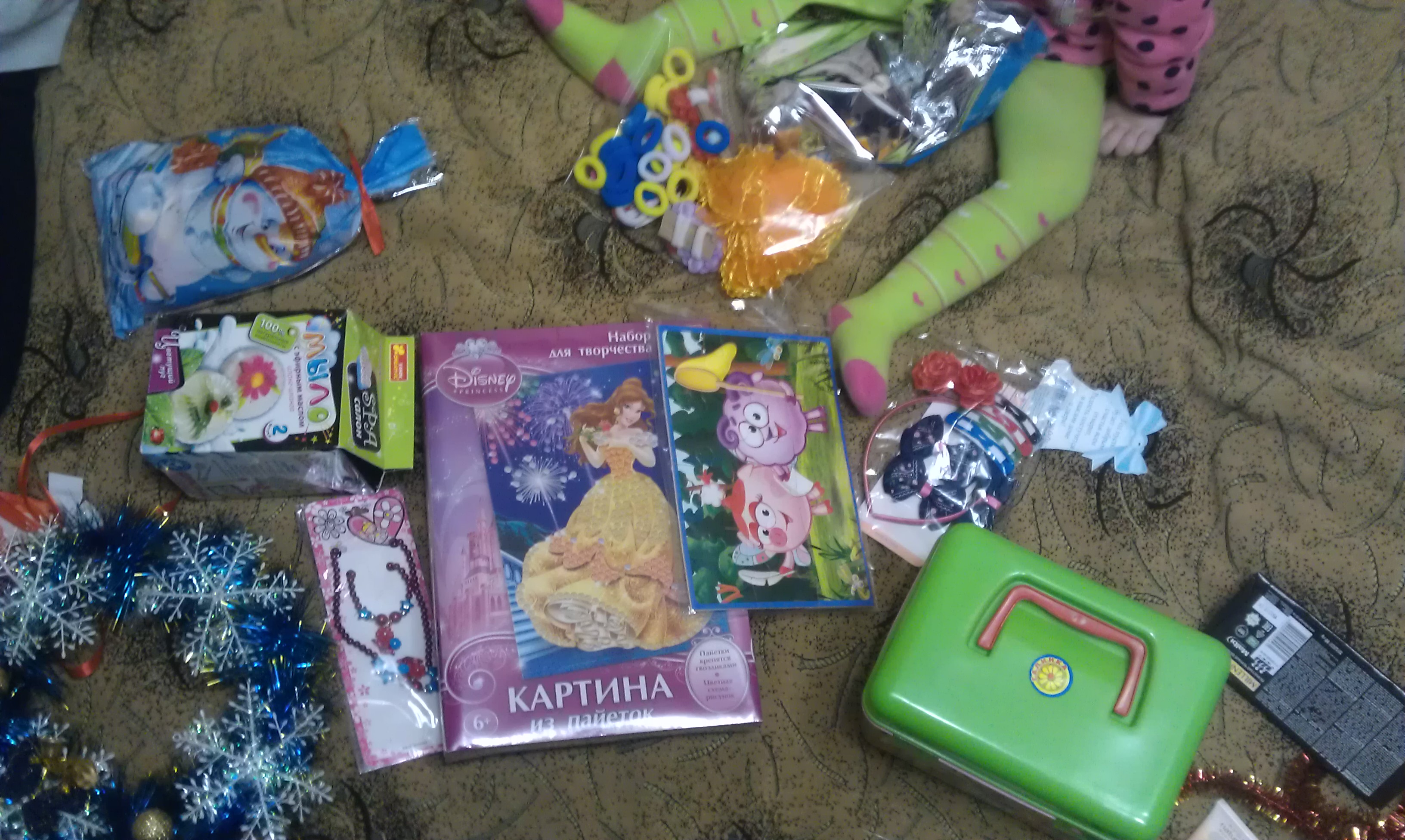 А сегодня к нам привез курьер посылку прямо домой. У детей просто сон пропал, в пижамах прибежали открывать долгожданную посылку и в них же фотографировались, кроме старшей , она как всегда была на тренировке. У меня не хватает слов описать всю эту красоту, начиная с коробок в которых они лежали, а у каждого своя коробка, и заканчивая внутренним содержанием. Не забыла Снегурочка и о маме, мне тоже передала подарок, за который ей отдельное спасибо)))