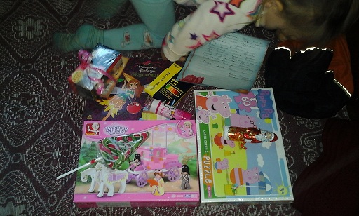 Хочу сказать огромное спасибище нашей Снегурке Катюше Петровой!!!! вот это я называю угадала на все 200%! у мен дочка с ума сходит от свинки Пеппы, когда увидела пазлы - восторг дикий был!! уже испробовали карандаши, надули кучу мыльных пузырей, попробовали елку и деда мороза на вкус, сложили карету(это мама в попыхах - первый раз складывала), в общем - постарались вы на славу) а чаек буду вечером пить)