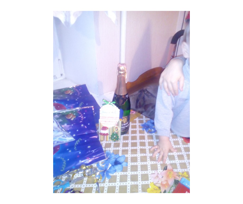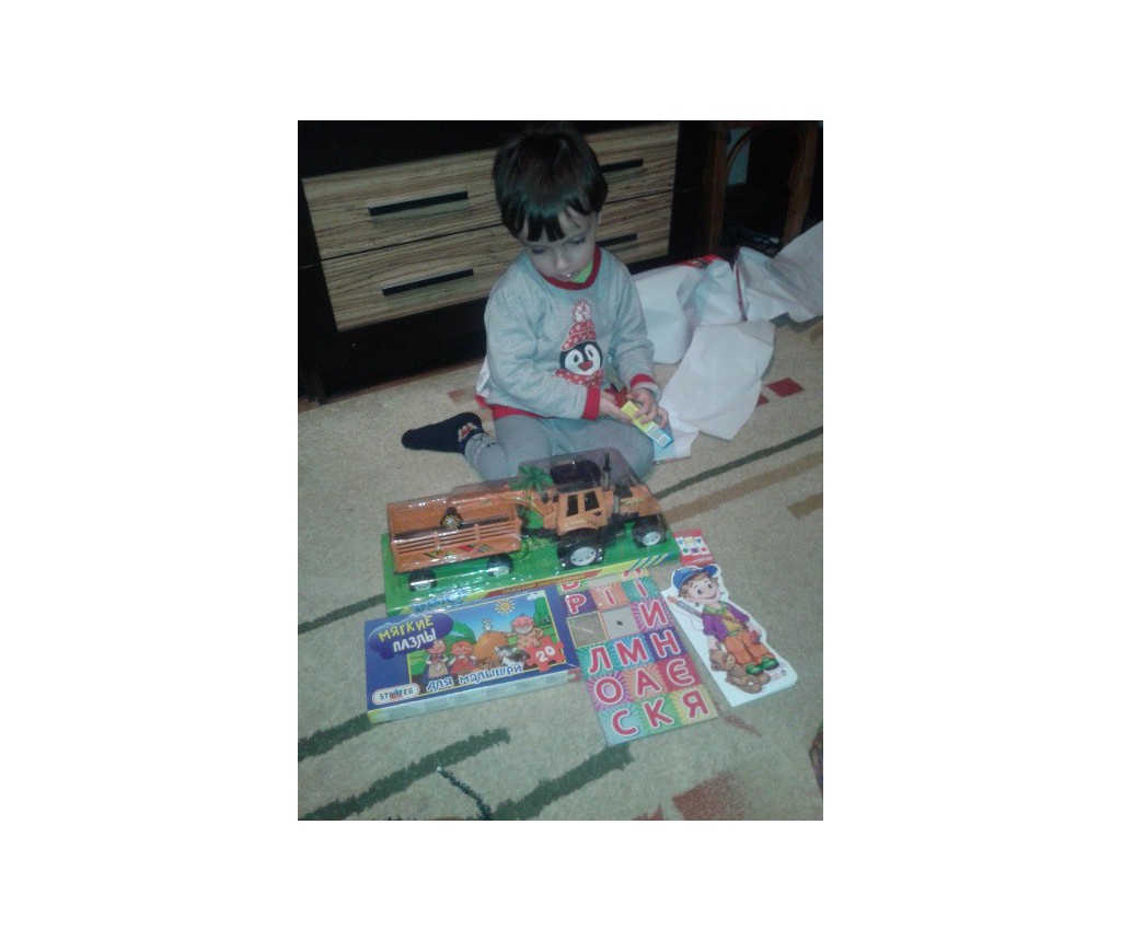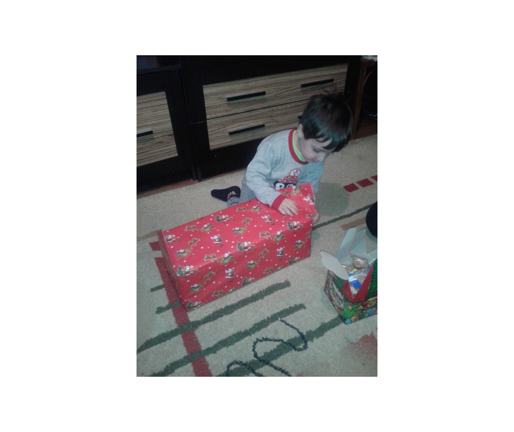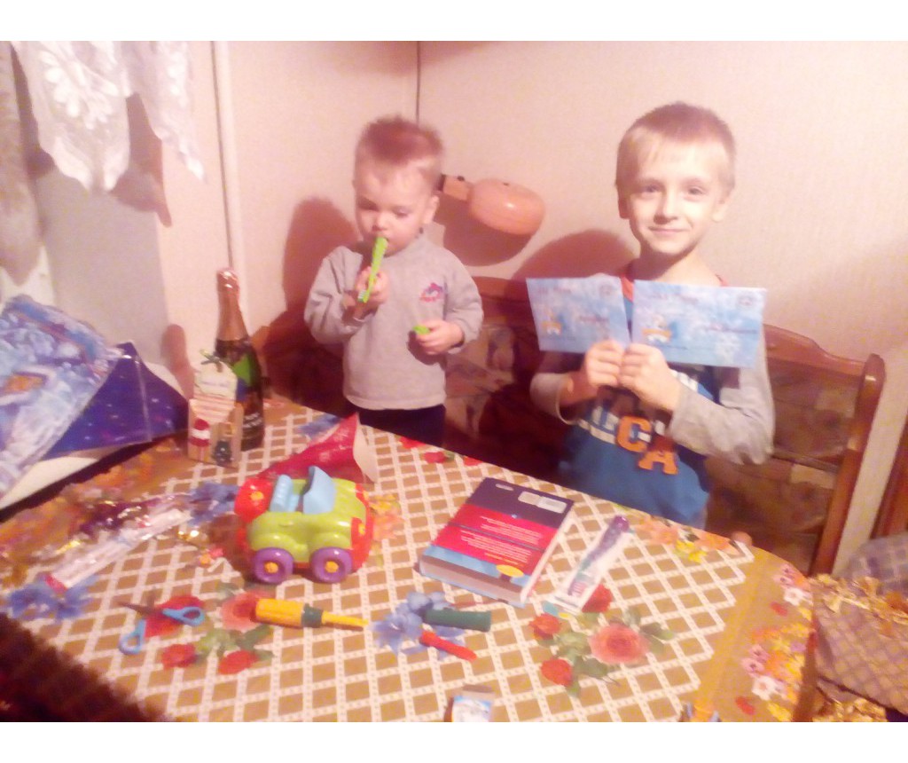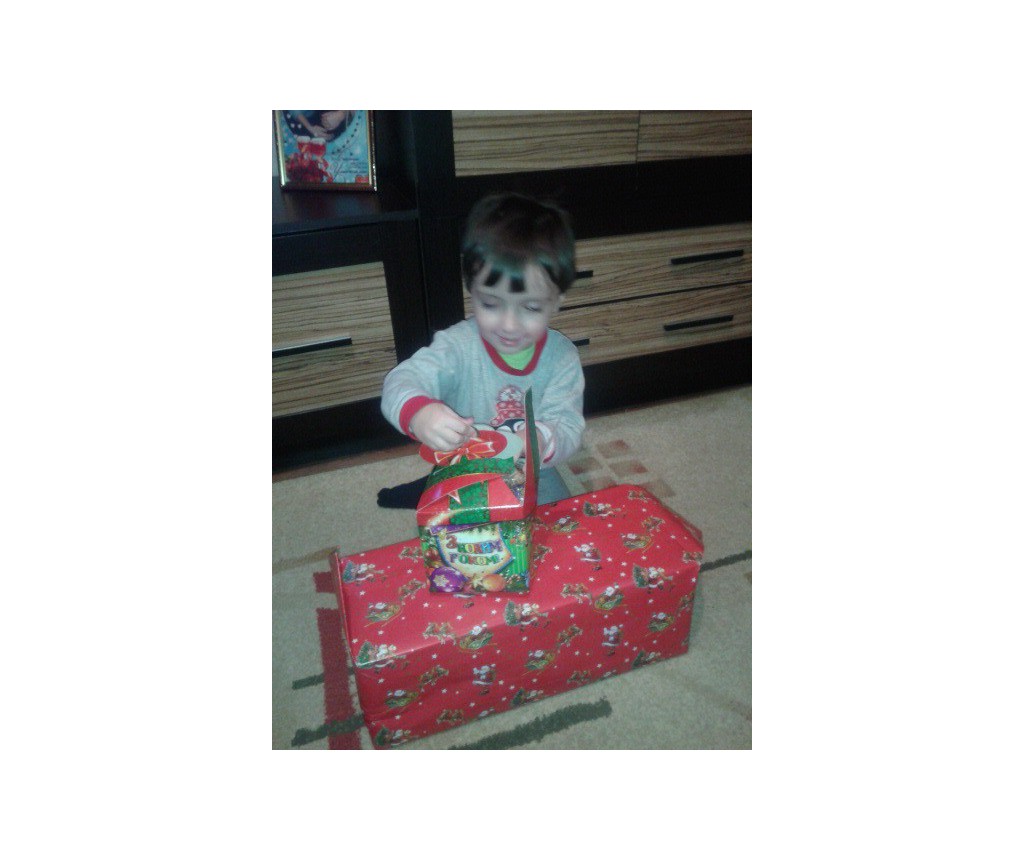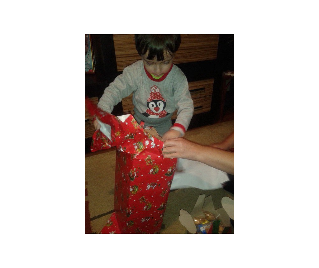 Пока малыш спал, открывали волшебные подарки один за одним, ощущая тепло и радушие Снегурочки и наступающего Нового года.