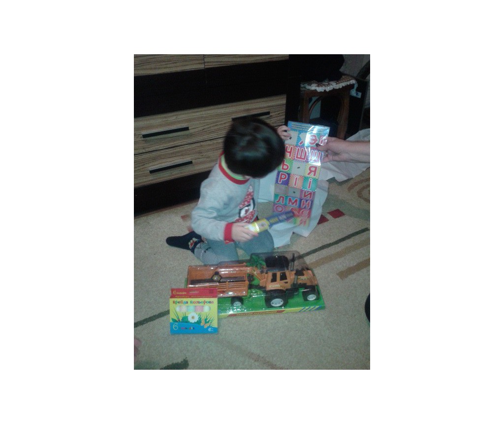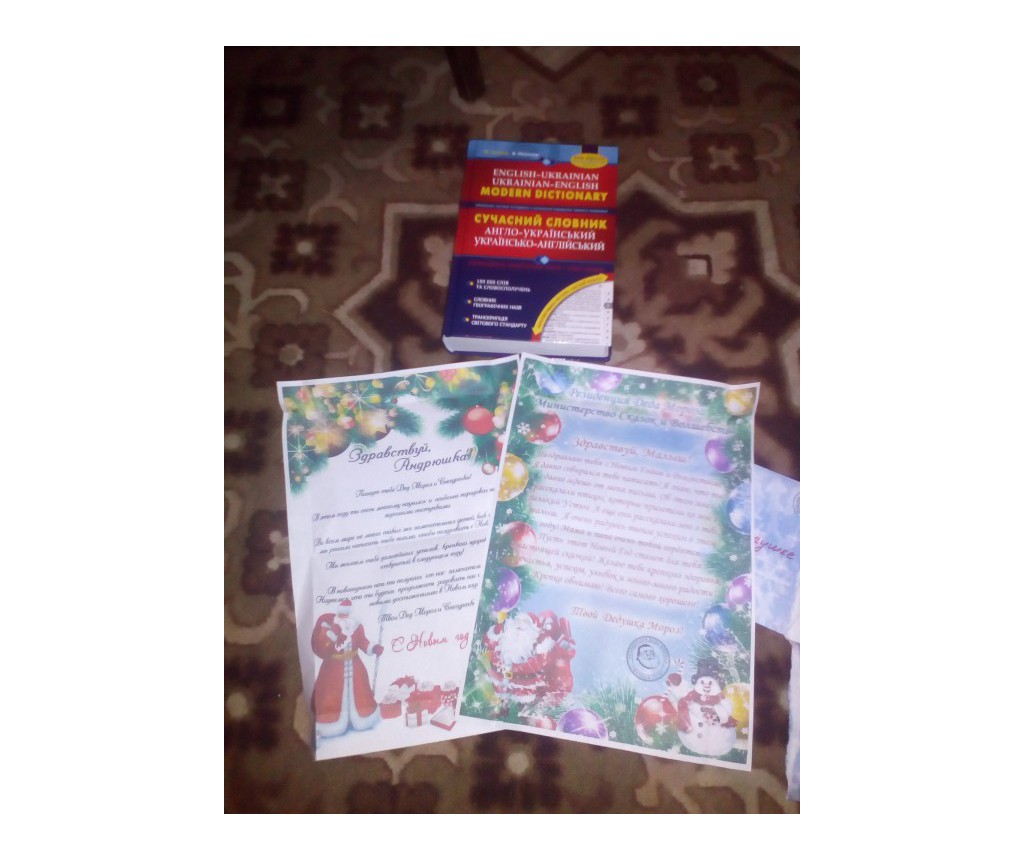 А нам вчера так сказочно, поздно вечером в фантастической темноте на коне (автомобиле) Дед Мороз (муж) доставил подарище!!! от нашей Снегурочки (Феечки). Это было здорово, это так классно, когда уже и не ждешь ничего, лежишь смотришь телевизор и вдруг звонок, а на том конце трубки нежный голос говорит, что: - Я ВАША СНЕГУРОЧКА, ЖДИТЕ ПОДАРОК!!! Ура!!! малый заметушился и мы как на вулкане ждали.... Малый был на 10-ом небе, а еще наша Снегурочка нам подарила нашу слабость - это ТРАКТОР.... и что самое важное - такого у нас еще нет!!!! Мы с трактором даже спали сегодня... Еще буквы на магнитиках, развивающие карточки, пазл "Репка", сегодня с утра встали и первое что попросил это - давай собирать репку!!! а также книжечку и конечно же сладости и фруктики а старших моих заинтересовали печеньки с предсказаниями.... Прошу прощение за фото, у нас так и нет фотоаппарата...