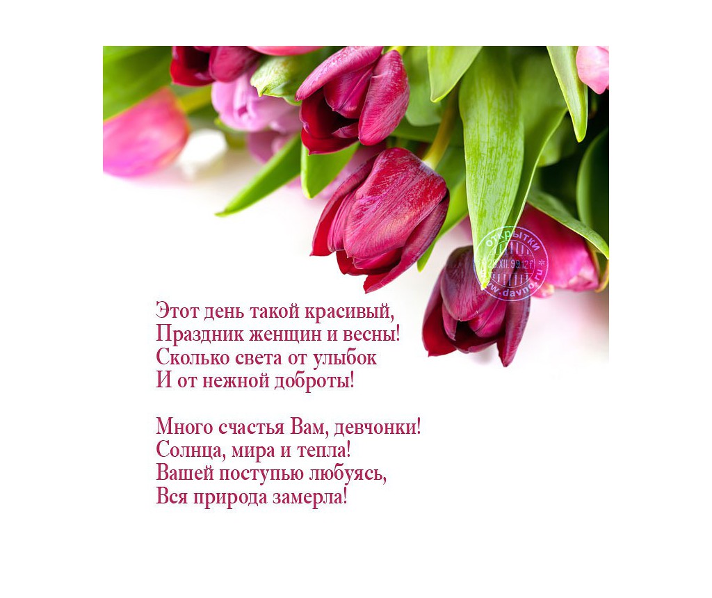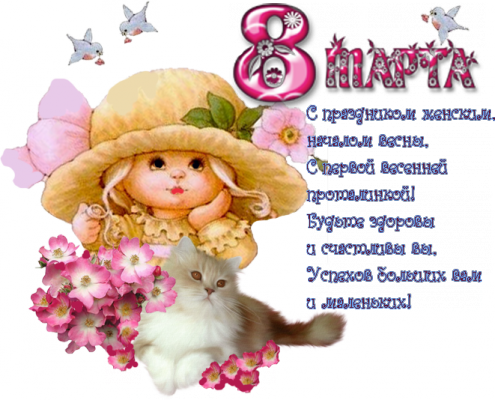 Девчёнки!!!Всех поздравляю с праздником 8 Марта!!!Здоровья, счастья, любви!И самое главное - мирного неба над головой!