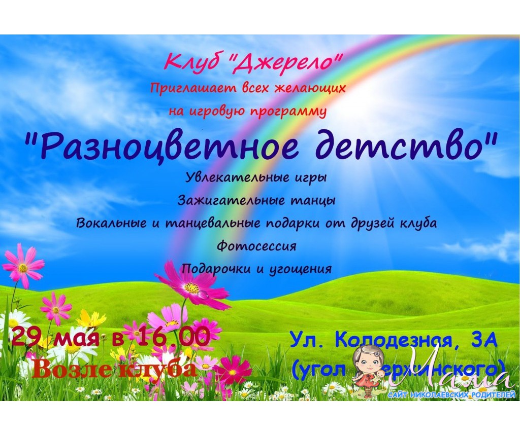 29 мая в 16.00 , возле клуба "Джерело", состоится праздник к дню защиты детей. ( Ул. Колодезная, угол Ул. Дзержинского)