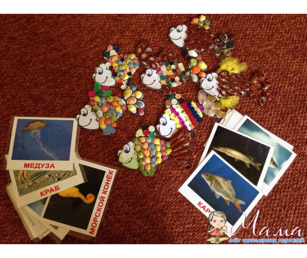 Узнаем и называем, сравниваем, выкладываем, собираем, рисуем, приклеиваем, считаем, украшаем картинки, изучаем, узнаем много нового о рыбах.
