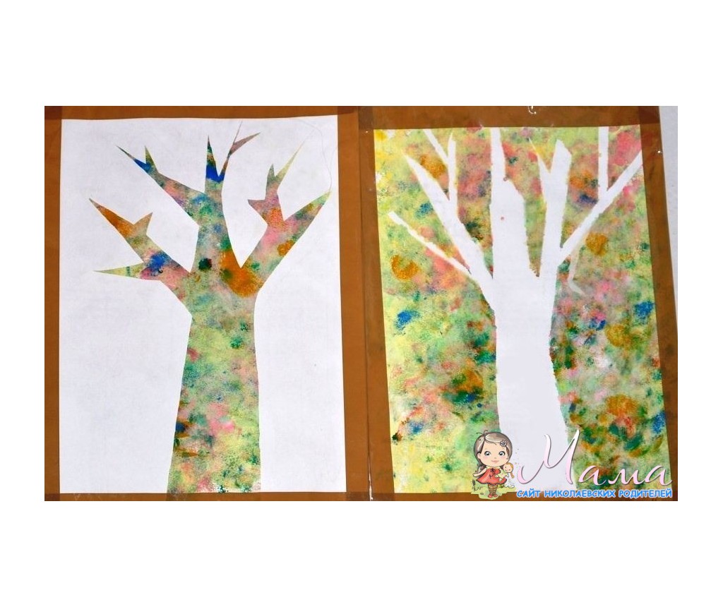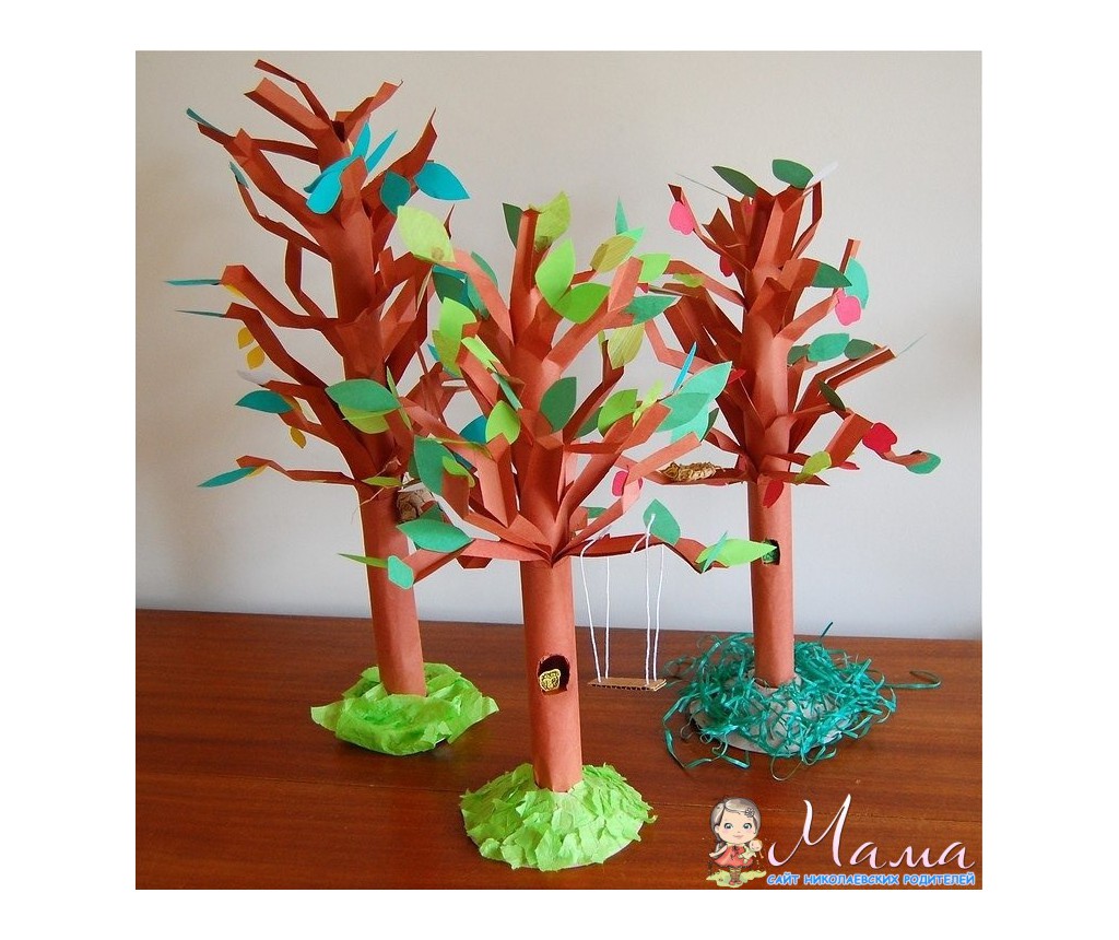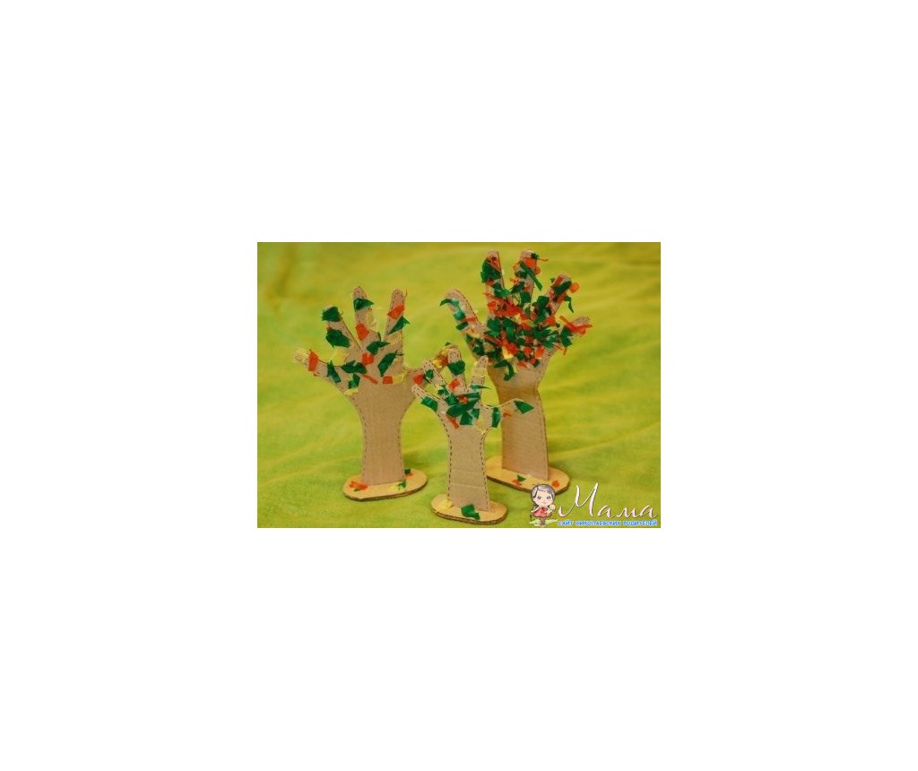 *ребенок сам вырезает и приклеивает листики на дерево