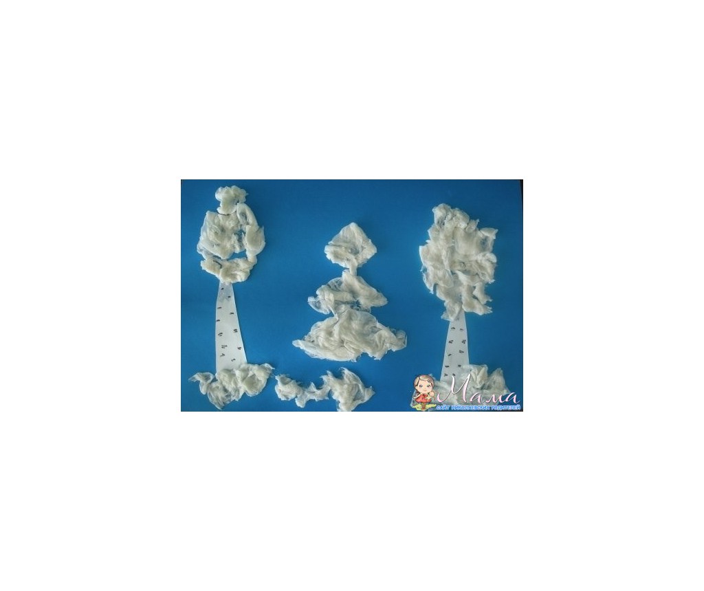 * делаем зимнее дерево из кусочков ваты
