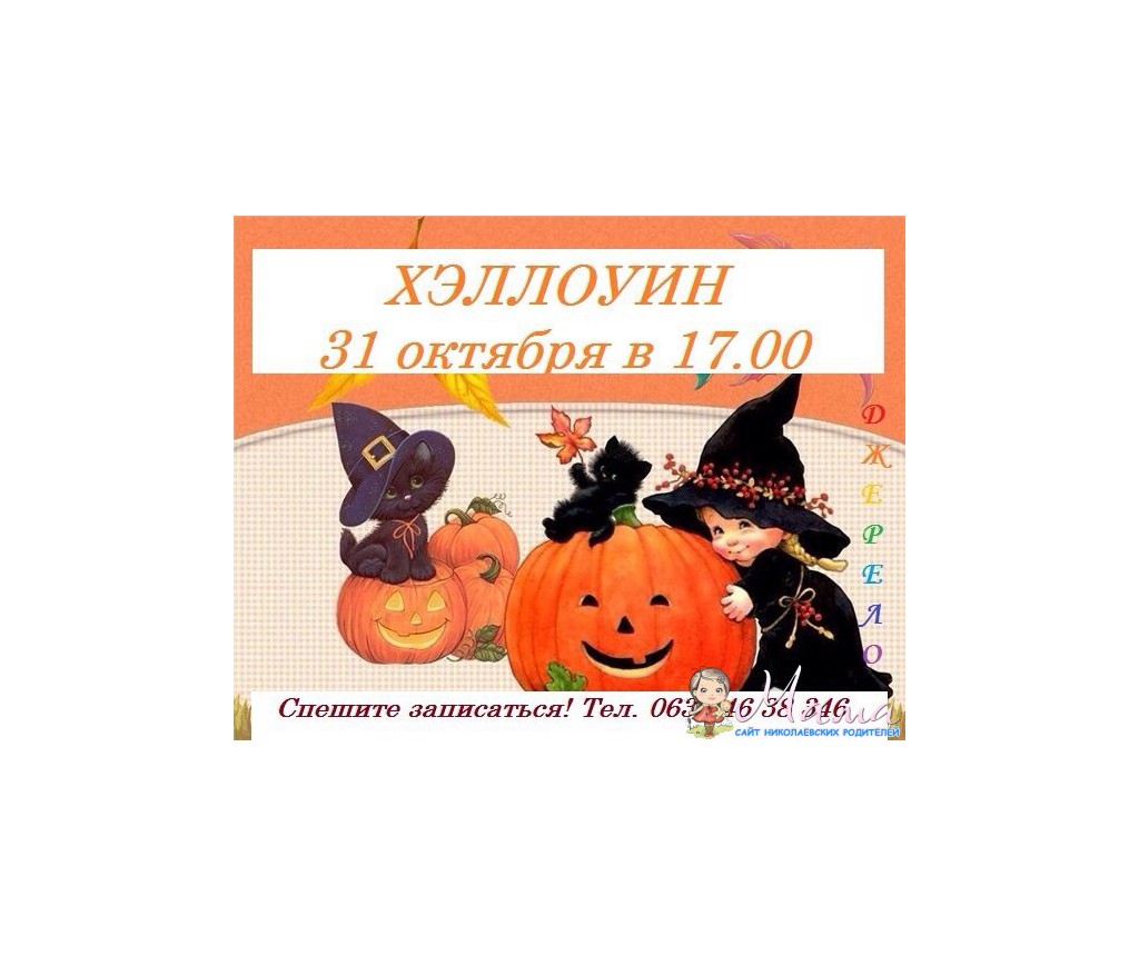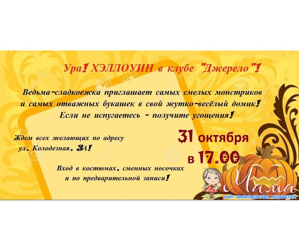 Детский Хэллоуин в Клубе "Джерело"! Приглашаются ребята от 3 до 6 лет на игровую, жутко-веселую программу! Количество мест ограничено!