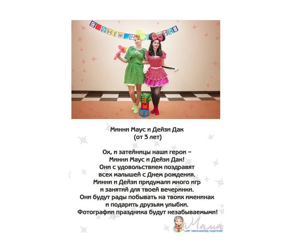 18 November 2014 Хотите устроить своему ребенку незабываемый праздник? Мы поможем Вам! Мы предлагаем Вашему вниманию широкий выбор праздничных программ с участием любимых всеми сказочных персонажей.