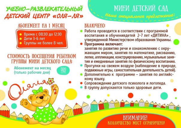Мини детский сад в ДЦ"ОЛЯ-ЛЯ"❗❗❗