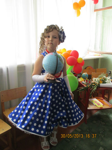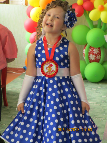 очень красивая выпускница! платье красивого цвета, а самое главное "детское"!