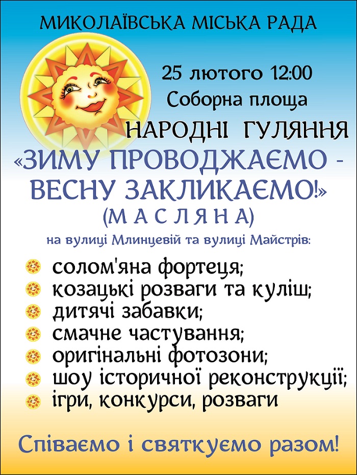 У суботу, 18 лютого, 14:00 в Центральній міській бібліотеці імені Марка Кропивницького до Міжнародного дня рідної мови відбудеться літературно-музична композиція "Па-беларуску серцайка спявае". Миколаївців познайомлять з творчістю білоруських поетів і письменників, національними традиціями білоруської культури. Звучатимуть вірші та проза, народні пісні білоруською мовою у виконанні активістів національно-культурного товариства білорусів. Доповненням послужать відеосюжети про Республіку Білорусь і пісні білоруських виконавців.