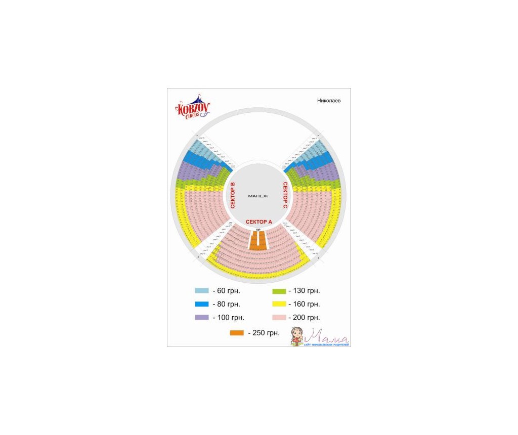 Флаера раздают промоутеры по городу, где не знаю, и написано, что может по садикам - школам будут раздавать. Подарок стоит 60 грн., по флаеру может будет скидка. Дети до 3 лет бесплатно, желательно свидетельство о рождении, старше- полная стоимость билета. Вот план мест. Как думаете, там где по 60 грн. будет что-то видно?