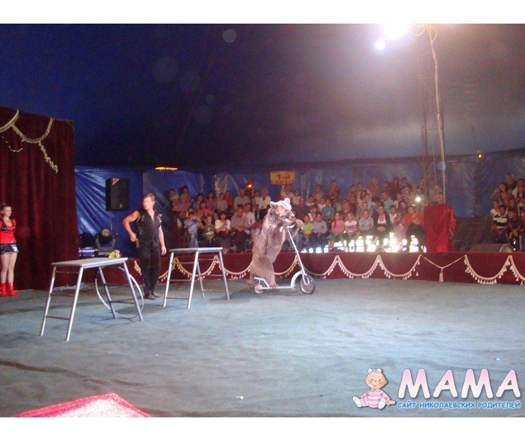 Мы были в субботу в цирке, программа средненькая (как для меня)-- детям понравилось. Из животных-- голуби, собачки и медведи; как обычно-- клоуны, девочка- канатоходец, а в конце-- переезд авто через человека (это увлекательно и интересно). Места брали в ложе (с флаером -скидкой по 60 грн, дети на руках). Программа в целом около 3-х часов, перерыв 30 мин.