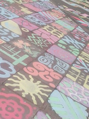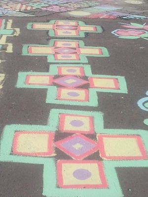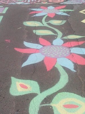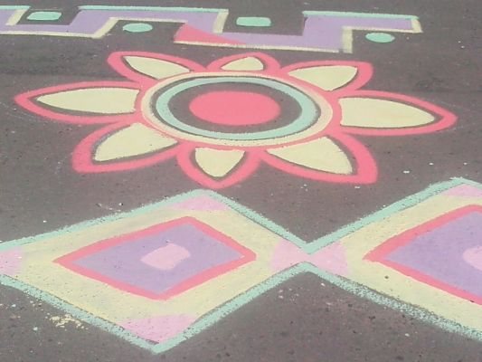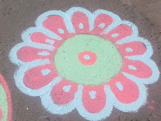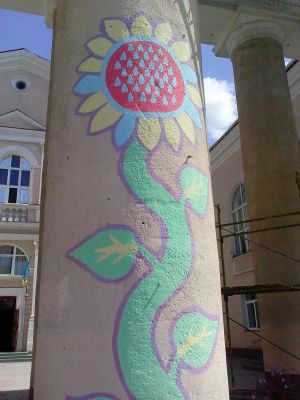 Площадь перед зданием раскрасилась цветами и орнаментами - я как раз наблюдала процесс, но фотографировать юных художников не решилась))