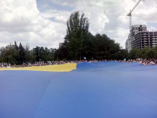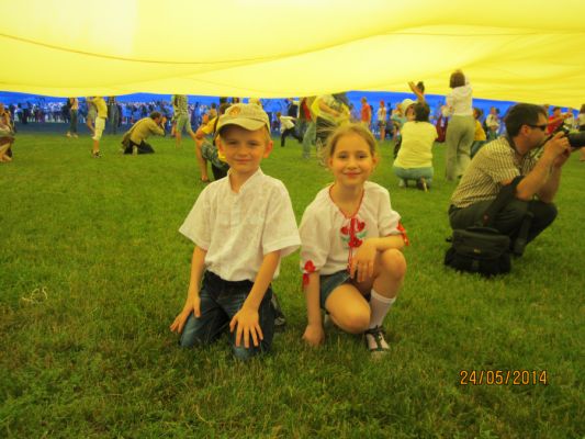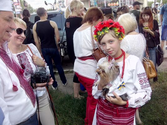 Було дуже багато красивих людей, різноманітні варіації української симоліки на них. Але більш за все вразила ця дівчинка із патріотичним песиком)))