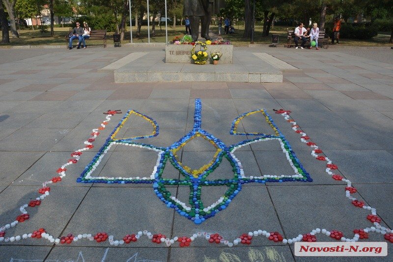 Напомним, о первых результатах акции по сбору пластика волонтеры рассказали на День независимости. Тогда у памятника Тарасу Шевченко выложили герб из пластиковых крышек. Сегодняшняя акция посвящена предстоящему Дню знаний, поэтому из пластиковых крышек волонтеры и все желающие могут выложить детские рисунки.