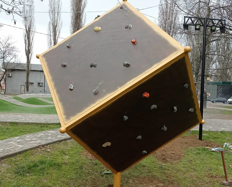 Фото «кубика» выставила в Фейсбуке руководитель кружков Николаевского областного Центра национально-патриотического воспитания и туризма Мария Колесникова. «Сьогодні встановлюємо таку скелелазну цікавинку для нашого Миколаєва. Вже невдовзі можно буде випробувати свої сили», - написала автор поста.