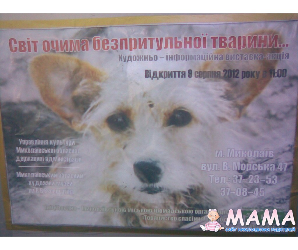 Да, а в эти дни в музее им Верещагина фотовыставка проходит "Світ очима безпритульної тварини" называется.
