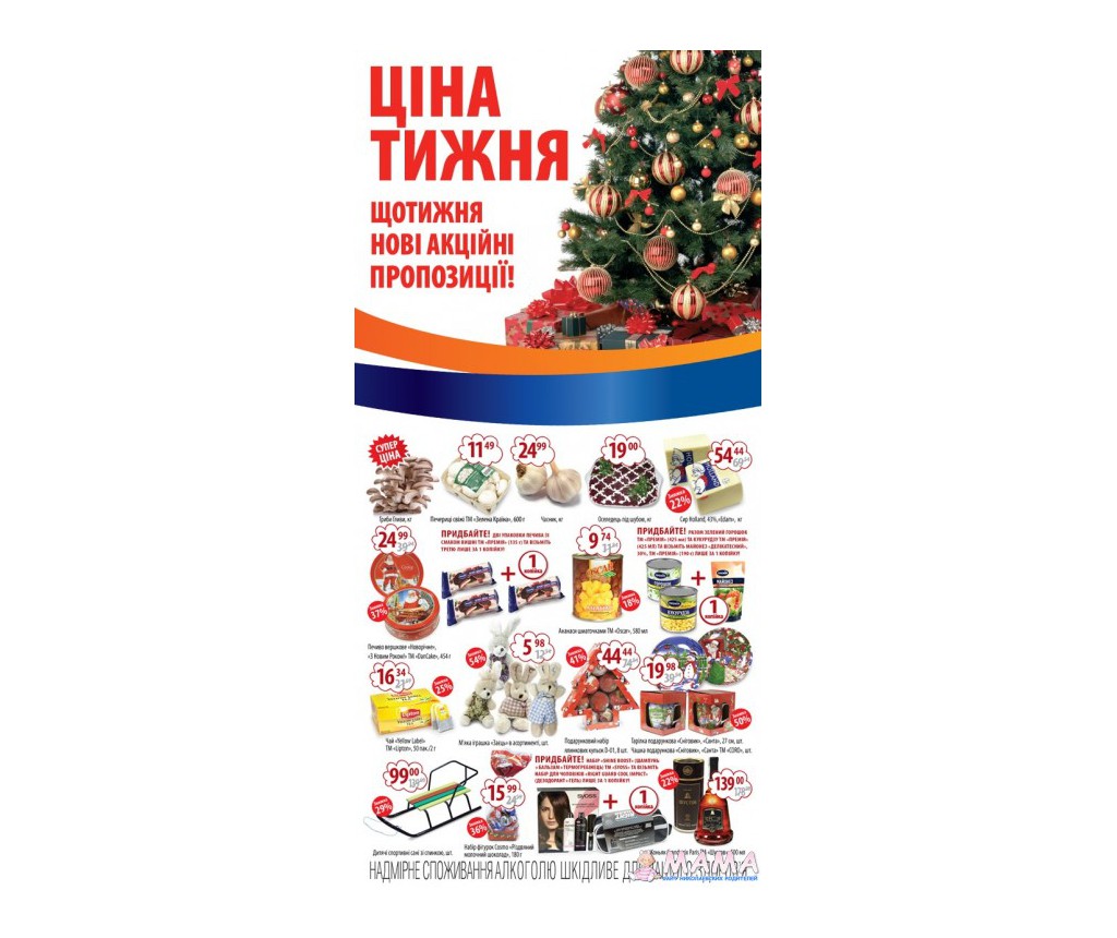 С 23 по 29 декабря включительно в сети «Сільпо» действует новое предложение – «Цена недели»! Узнать подробнее об этом предложении* Вы можете на сайте Сільпо.
