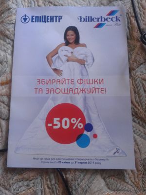 В Эпицентре продукция billerbeck (это подушки, одеяла) с 50% скидкой если есть фишки. у меня 30 штук кому надо поделюсь.