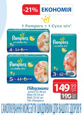 Подгузники Pampers Active Baby Джамбо упаковка ( 3-82 шт, 4-70 шт, 4+-62 шт, 5-58 шт, 6-54шт - 190,95 грн