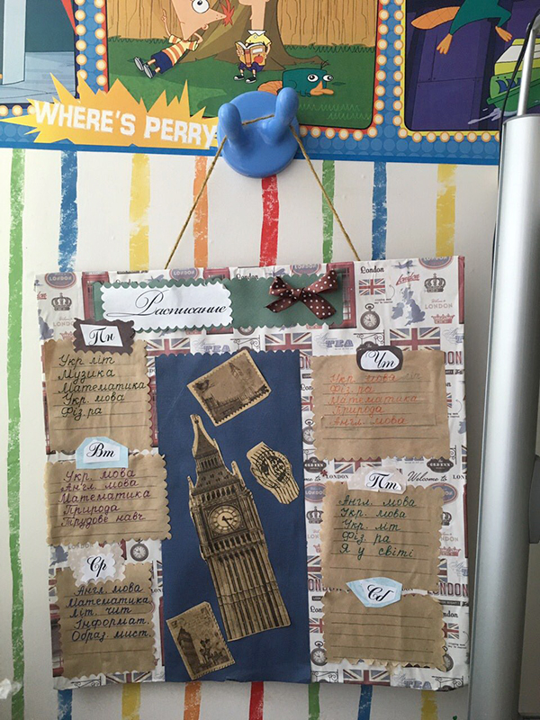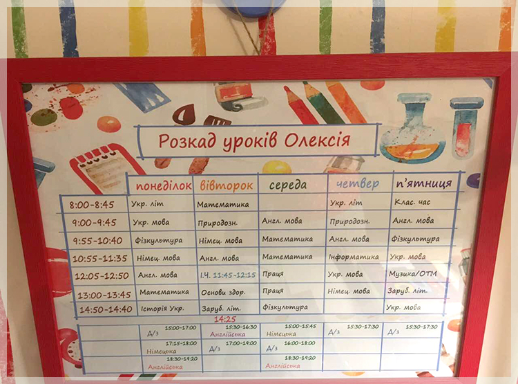 Нам почему-то расписание совершенно не нужно оказалось, все в памяти или в дневнике. Вовка себе заполнил только потому, что был у него плакатик.