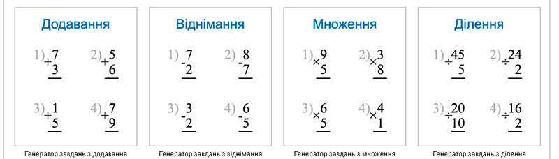 Минус - нельзя настроить разное кол-во знаков в числах, зато плюс - ответы прилагаются, в отличие от популярных печатных сборников.