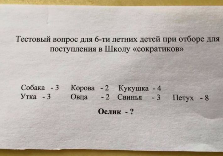 Добавлю задачку из вступительных тестов для первоклашек в Гонконге. На нее детям дается 20 секунд. Думаю, что многие уже видели ее, но может еще кто нет.