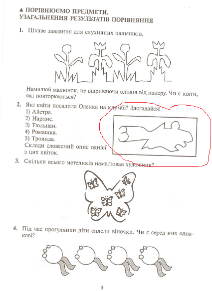 страшно представить, какая тут логика... я сперва в рисунке каки-то очертания пыталась увидеть. остановилась на том , что впереди цифра 3 и знач тюльпаны. ну учитывая, что это для деток маленьких, судя по остальным заданиям.
