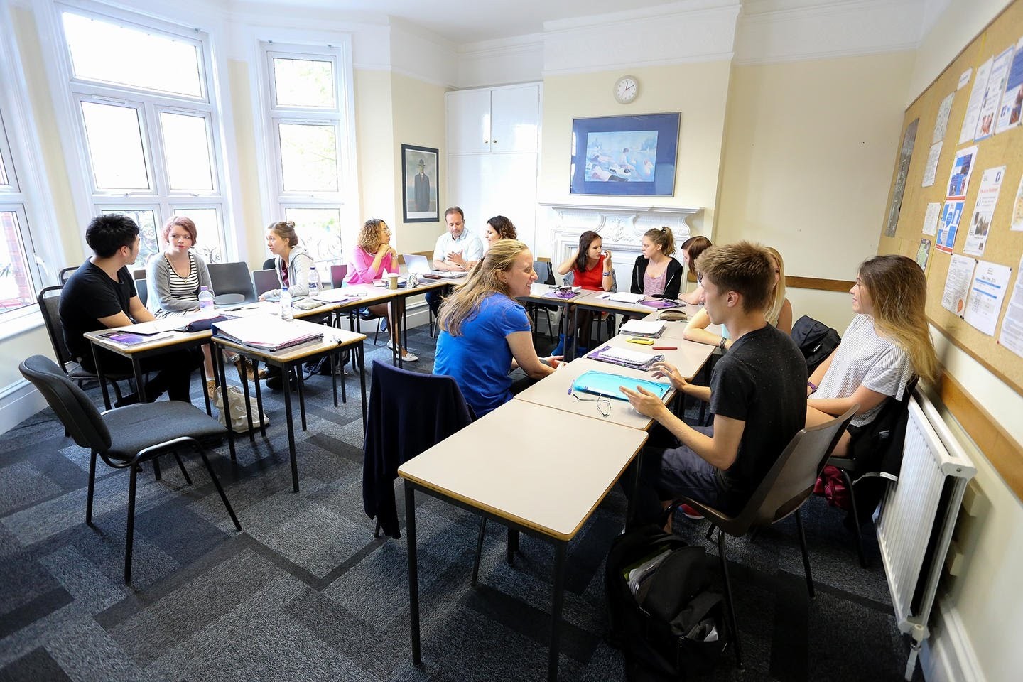 У нас парты стоят по периметру класса лицом друг к другу. Пересаживают 1 в месяц.