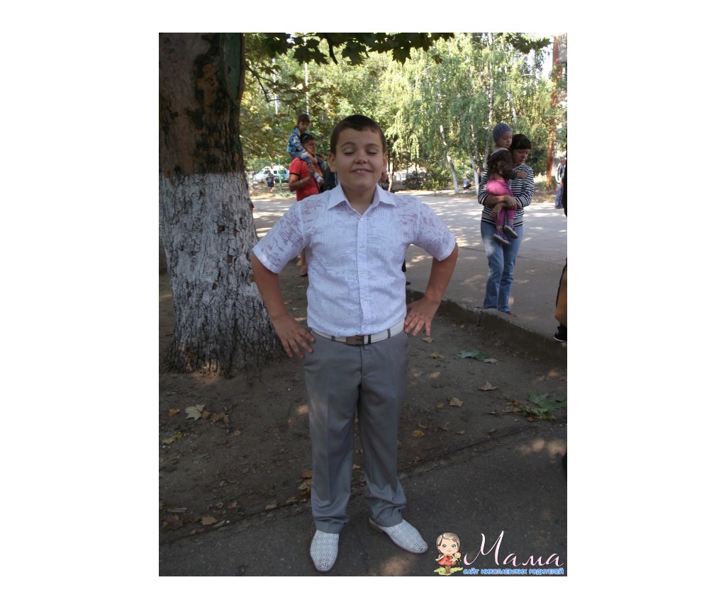 . Первый (брюки с рубашкой) сразу после линейки заляпала в пиццерии, потом свинюшка побежала домой переодевать верх, заодно и брюки сменила на юбку).
