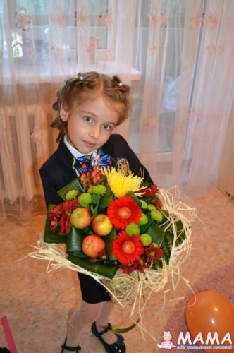 Спасибо. Я долго искала что и как, но девочки молодцы в этом году нас не подвели и сделала такой же красивый будет только нужных размеров. Так как в прошлом году у нас был очень тяжелый букет, хотя и очень красивы со свежими яблоками ))))