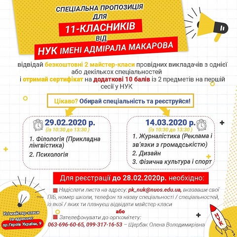Анонс бесплатных мастер-классов для выпускников школ от НУК им. адмирала Макарова