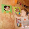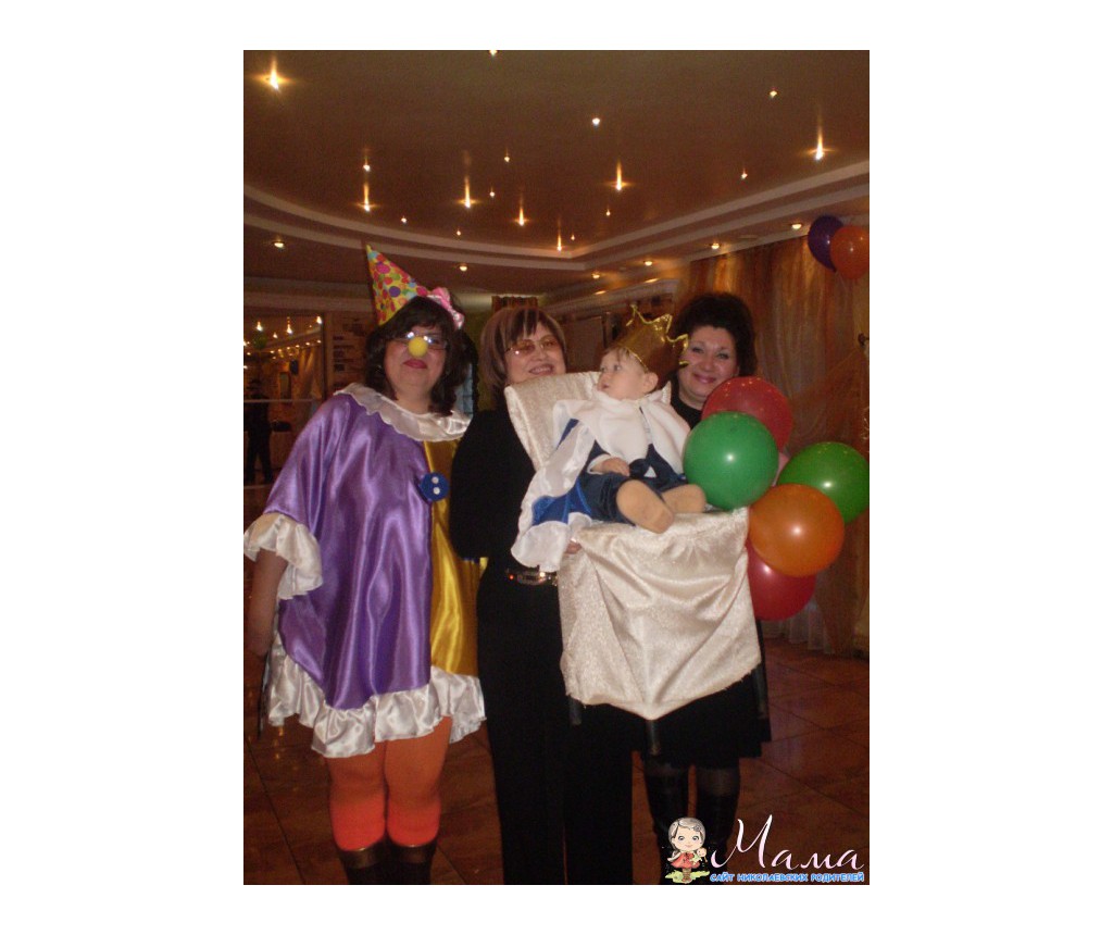 А для сыночка моей подруги на "годовасие Максика" - мы так назвали праздник!!! я готовила целый набор плакатов, календариков маленьких, которые вручались победителям конкурсов, календарь для прабабушки, дипломы для крестных, дипломы для дедушек и бабушек, анкеты, плакат "на кого я похож", медали, паравозик из фоток малыша по месяцам. А сам виновник торжества сидел на королевском троне, в короне и мантии короля (я сама готовила и шила). Ну а была я в костюме клоуна!!! Узнали?