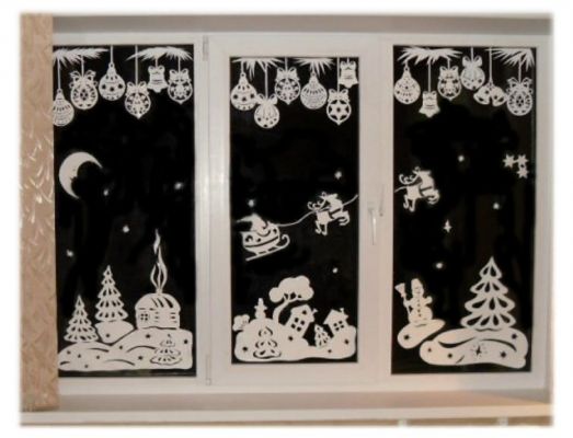 Самым старым и добрым способом считается украшение окон при помощи бумажных снежинок. Если вы творческий человек, то подключите свою фантазию. Возможно, это будут снежинки, а может быть Дед Мороз на санях либо же другие популярные рождественские и новогодние рисунки.