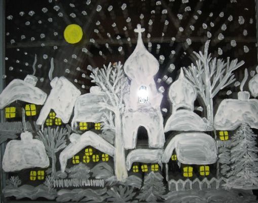 Данные краски продаются в тюбиках, что дает возможность точно и красиво нанести краски на окно, иногда в них даже вложены оригинальные трафареты, с помощью которых можно получить прекрасное изображение. Конечно, можно использовать самую обыкновенную гуашь либо же акварель. Самое главное,