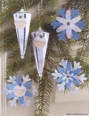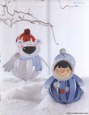 В заключении наносим ПВА на нужные места и макаем в искусственный снег. Искусственный снег можно заменить манной крупой, бисером или пайетками. Винтажные новогодние игрушки готовы!