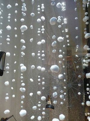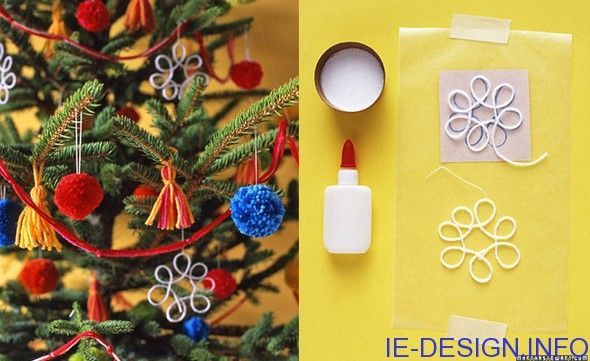 3. Высохшие нити со снежками развесить где-угодно, на свое усмотрение.