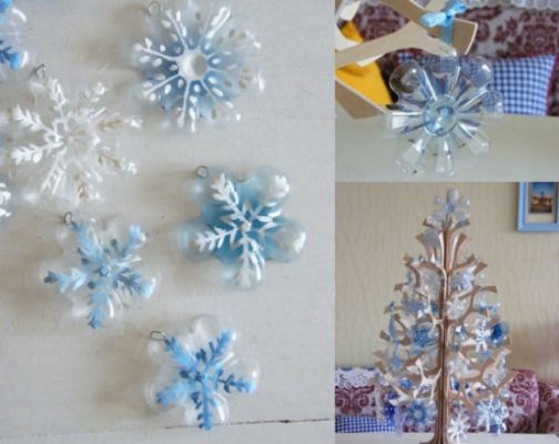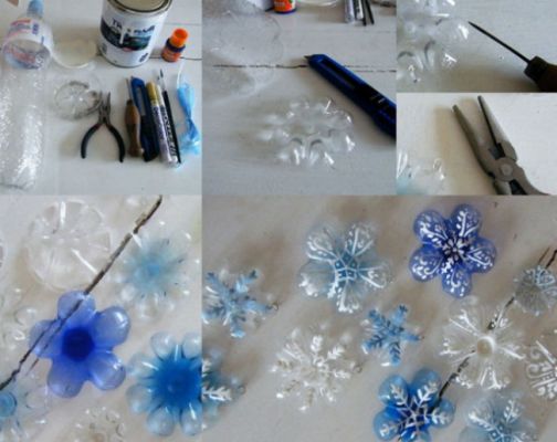 Снежинки из пластиковых бутылок