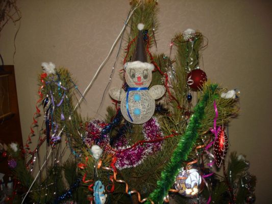 А это наша прошлогодняя самодельная ёлочка. Делали вместе с дочеькой!!! Наряжала дочка сама!