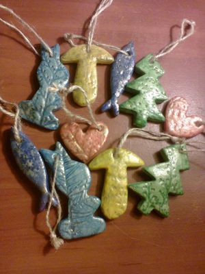 Я тоже купила набор форм для печенья металлические (не помню, вроде 15 грн) и наделала елочных игрушичек из соленого теста. Уже раздарила немного, придется снова делать). А формы покупала на центральном рынке, как идти к рыбному павильону почти перед самим павильоном справа где вся кухонная утварь. вот те 2-3 ларька открытых. |