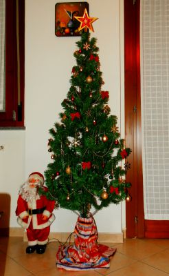 Уже года три все собирались купить искусственную сосну. Но все не складывалось. В этом году мы все таки это сделали. Смотрится очень симпатично. Но когда я пробегала по рынку мимо живых сосен, чуть не разрыдалась, не хватает мне аромата хвои))) Муж шутит, что подарит мне освежитель воздуха с запахом хвои