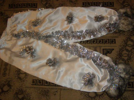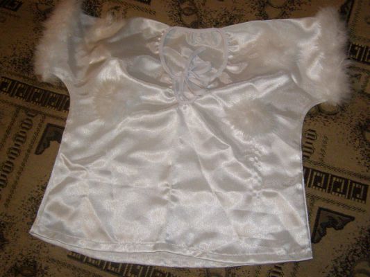 Есть костюм-основа (белые атласные штаны и кофта, обшитая лебяжим пухом) пойдет на разные костюмы. Прокат и продажа
