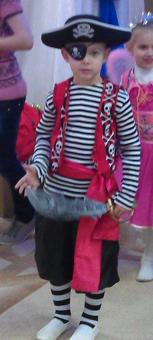 Нужен костюм пирата, у нас есть костюмы Пьеро и Артемона.